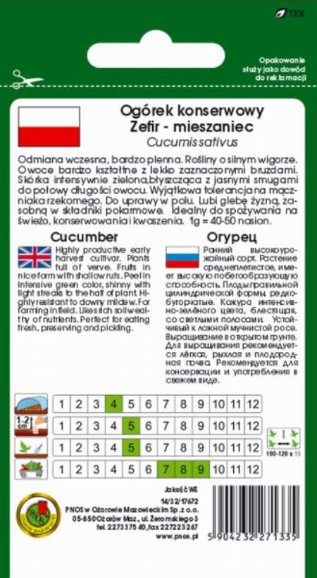 Ogórek gruntowy może być uprawiany zarówno z siewu nasion bezpośrednio do gruntu lub z rozsady. Rozsadę możemy przygotować już w kwietniu pod osłonami, jednak nasiona ogórka do gruntu wysiewamy dopiero w drugiej połowie maja. Mamy wówczas pewność, że podłoże będzie odpowiednio ogrzane, a młode rośliny nie będą narażone na mrozy. Ważne jest by sadzić ogórki w słonecznym i ciepłym miejscu. Powinniśmy zapewnić im dobre gleby, zasobne w składniki pokarmowe i próchnice. Dość wilgotne, ale również przepuszczalne. Zbiór pierwszych owoców odmiany Zefir F1 będzie możliwy już w lipcu.