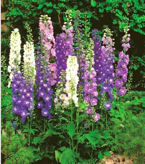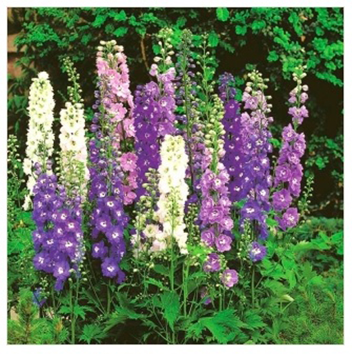 Ostróżka Pacific Giant mix Delphinium cultorum Pacific Giant Galahad to roślina wieloletnia charakteryzująca się bujnym wzrostem i wzniesionym pokrojem. Tworzy gęste kępy zbudowane z dużych, dłoniasto-klapowatych liści oraz z długich i grubych łodyg, osiągających wysokość 100-150 cm. Na szczytach łodyg od czerwca do sierpnia rozwijają się niezwykle dekoracyjne, kłosowate kwiatostany, zbudowane z charakterystycznych kwiatów o barwie niebieskiej, białej lub różowej. Po przycięciu przekwitających kwiatostanów, rośliny powtarzają kwitnienie jesienią. Rośliny niesamowicie prezentują się w ogrodzie, szczególnie uprawiane w grupach na tle drzew lub płotów, do których może być podwiązane. Kwiaty ostróżki mogą być wykorzystywane do układania bukietów.