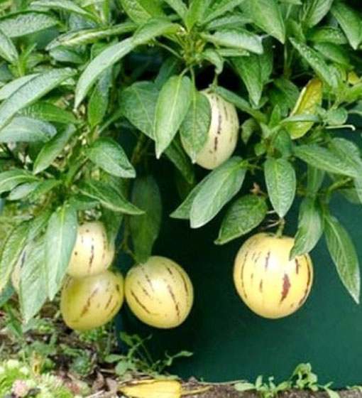 Pepino Solanum muricatum ma bardzo smaczne i słodkie owoce. Mają one podłużny, sercowaty lub gruszkowaty kształt o barwie kremowej z fioletowymi paskami. Smak owocu stanowi połączenie smaku cytryny, ananasa i melona. Gdy roślina dojrzewa to staje się miękka jak na przykład kiwi. Pepino może być, również traktowane jako warzywo. Roślina pochodzi z Chile i Peru. W naszym klimacie roślina dorasta do dziewięćdziesięciu centymetrów wysokości. Jej owoce dojrzewają na jesieni i mogą osiągnąć wagę czterdziestu dekagramów. W krajach o cieplejszym klimacie Pepino uprawia się jako bylinę, u nas w kraju natomiast jako roślinę jednoroczną.
