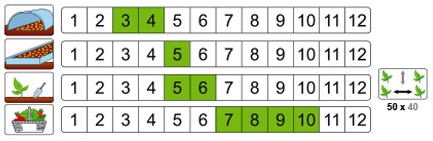 Rozstawa: na ogół 50 x 40 cm inna rozstawa zależy od możliwości maszyn do uprawy