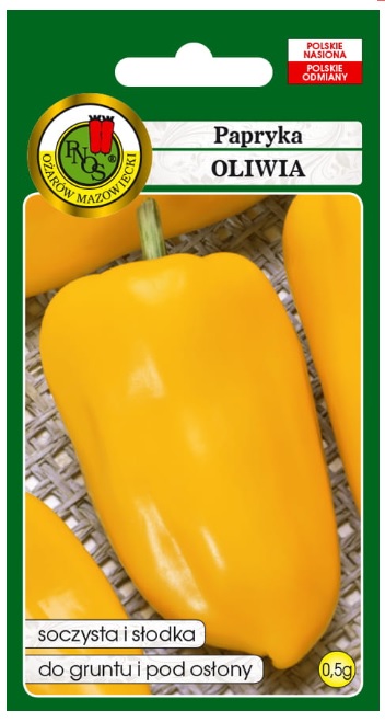 Papryka Oliwia to odmiana wczesna. Przeznaczona do uprawy w gruncie i pod osłonami. Polecana do bezpośredniego spożycia i do konserwowania. Rośliny średnio wysokie (50-60cm) o pokroju krzaczastym. Zaleca się podpieranie i usuwanie pędów do pierwszego rozgałęzienia. Owoce w kształcie tępo zakończonego stożka, masa 80-130g. Miąższ soczysty, słodki bardzo smaczny, o grubości 6-9mm.