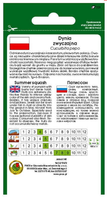 Norma wysiewu: 2-4 na rozsadę, 3-5 do gruntu kg/ha