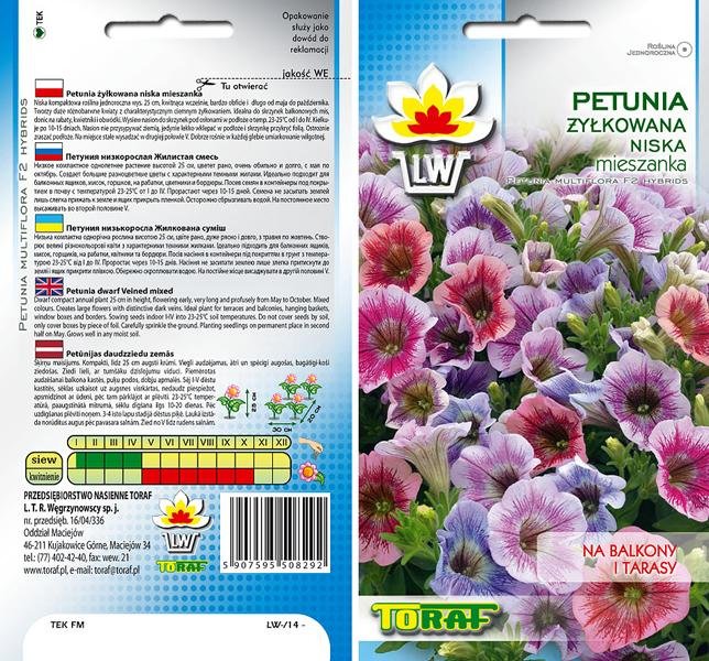 Niska kompaktowa roślina jednoroczna wys. 25cm, kwitnąca wcześnie, bardzo obficie i długo od maja do października. Tworzy duże różnobarwne kwiaty z charakterystycznym ciemnym żyłkowaniem. Idealna do skrzynek balkonowych mis, donic na rabaty, kwietniki i obwódki. Wysiew nasion do skrzynek pod osłonami w podłoże o temp. 23-25oC od I do IV. Kiełkuje po 10-15 dniach.