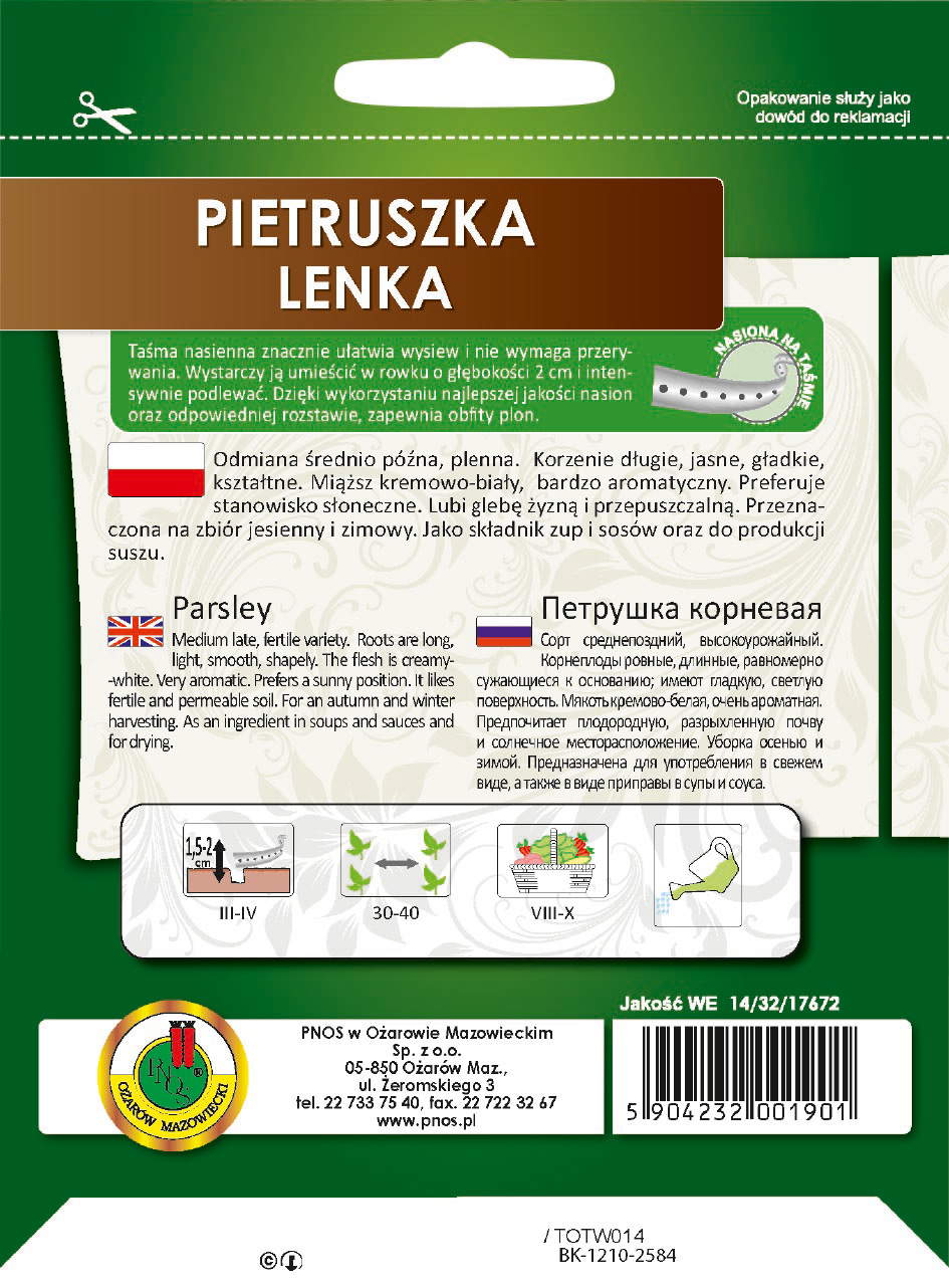 Pietruszka korzeniowa Lenka - nasiona na taśmie