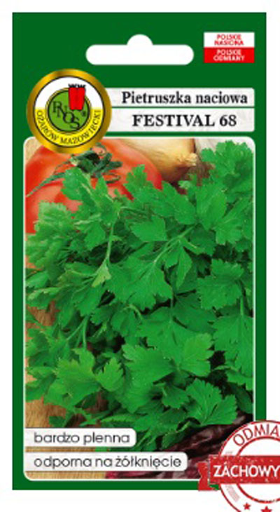 Pietruszka korzeniowa Festival PNE Pietruszka naciowa o liściach gładkich, intensywnie zielonych, bardzo aromatycznych, odpornych na żółknięcie i tolerancyjnych na mączniaka prawdziwego. Wzrost roślin bardzo intensywny, plon liści wysoki. Pierwszy zbiór natki można uzyskać po około 100 dniach od wysiewu. W lata sprzyjające możliwe jest uzyskanie trzech zbiorów handlowych liści. Na zbiór letni i jesienny nasiona należy wysiać wczesną wiosną, natomiast na zbiór wiosenny wskazany jest siew pod osłonami w lipcu poprzedniego roku. Dobrze zimuje w gruncie, nadaje się również do pędzenia.