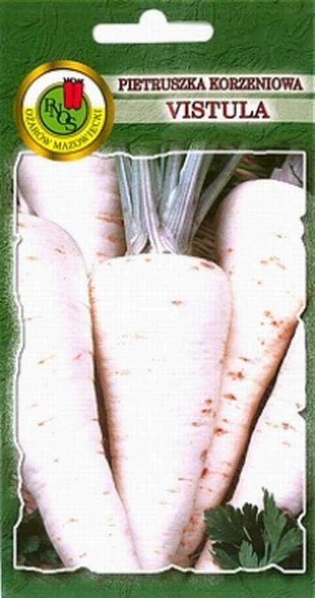 Pietruszka korzeniowa Vistula podobnie jak odmiana Kinga, jest bardzo plenna, lecz dojrzewa nieco później (to późna odmiana). Tworzy długie (19-22 cm), wyrównane, stożkowate lub stożkowato-wydłużone korzenie w typie Berlińskiej – Halblange. Kremowy, jędrny i aromatyczny miąższ pokryty jest białą lub delikatnie kremową skórką. Vistula tworzy średnio bujną, ciemnozieloną nać.