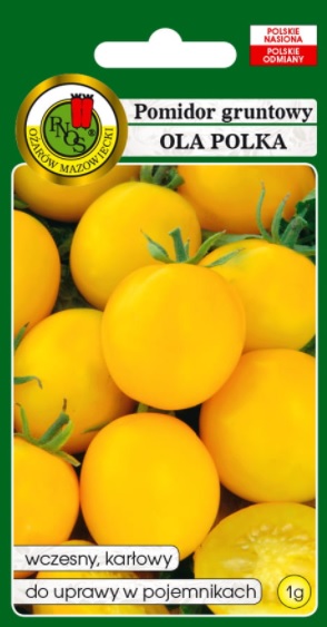 Pomidor Ola Polka to odmiana bardzo wczesna. Roślina karłowa, sztywnołodygowa, bardzo wczesna, samokończąca, niezbyt silnie rosnąca, o liściach typu ziemniaczanego. Owoce drobne (30-50 g), kuliste, żółte, bardzo smaczne. Przeznaczone do spożycia i konserwowania w całości. Odmiana polecana do uprawy w pojemnikach, na balkonach, tarasach. Preferuje glebę przepuszczalna o dobrej strukturze. Ilość dni od posadzenia do zbioru: 50-60.