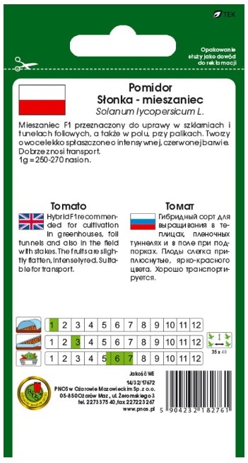 Pomidor Słonka to odmiana późna. Mieszaniec F1. Odmiana polecana do późniejszej uprawy w szklarniach, tunelach oraz w gruncie przy palikach. Owoce lekko spłaszczone, intensywnie czerwone, dobrze znoszące transport, masa 70-90g. Odmiana odporna na wirusa mozaiki tytoniu.