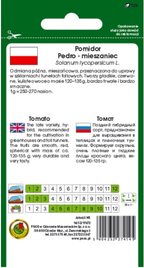 Pomidor Pedro to odmiana późna. Mieszaniec F1, przeznaczony do uprawy pod osłonami i w szklarni. Owoce średniej wielkości do dużych (120-135g), kuliste, o gładkiej, twardej skórce, bardzo smaczne. Dobrze się przechowują, nie pękają. W cieplejszych rejonach możliwa jest również uprawa w odkrytym gruncie.