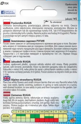 Poziomka Rugia to jedna z najbardziej plennych odmian poziomki. Owocuje przez długi czas – od połowy czerwca aż do pierwszym mrozów. Tworzy stosunkowo duże, silnie rosnące rośliny o zwartym, wzniesionym pokroju, na których dość szybko pojawiają się średniej wielkości owoce. Pojedyncza poziomka tej odmiany waży od 2 do 3 gram. Rugia wyróżnia się kształtem i kolorem owoców – ich skórka jest bardzo intensywnie czerwona a nawet ciemnoczerwona. Owoce mają kształt wydłużonego, wąskiego stożka o ostrym zakończeniu. Charakteryzują się także bardzo wyraźnym aromatem i kremowym, soczystym miąższem, w smaku bardzo zbliżonym do leśnych poziomek.