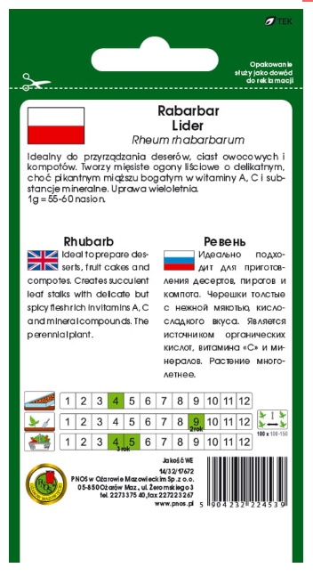 Rabarbar Lider pochodzi z obszarów Azji Środkowej, Bułgarii i prawdopodobnie południowej Syberii. Częścią jadalną rabarbaru są ogonki liściowe. Zawierają całą paletę cennych składników mineralnych, takich jak: potas, wapń, magnez, sód, żelazo, fosfor, witaminy z grupy B, witaminę C i karoten. Poza tym jest niskokaloryczny - 100 g. to zaledwie 16 kalorii. Rabarbar ma wiele zalet - można przygotować z niego pyszne galaretki i kisiele, orzeźwiający napój, a także dodać do ciasta. Pamiętać jednak należy, że zawiera wspomniany wcześniej kwas szczawiowy i nie powinno się serwować rabarbaru zbyt często i w zbyt dużych ilościach.