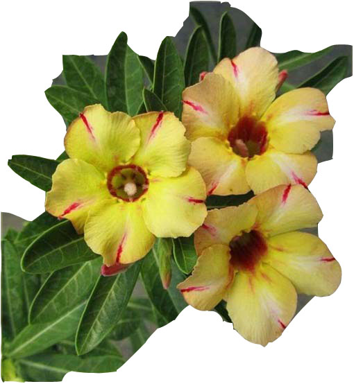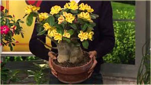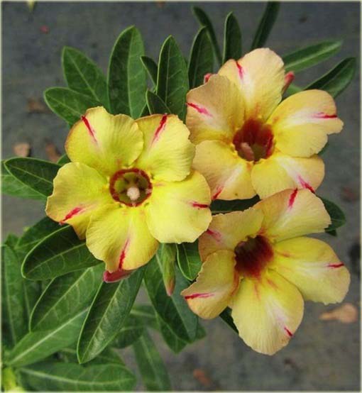 Róża pustynna żółta w czerwone paski, róża pustyni