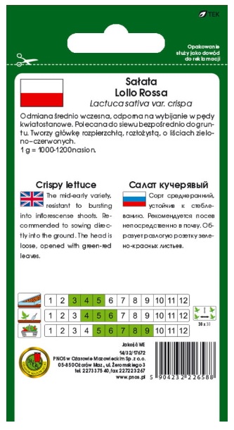 Sałata Lollo Rosa to sałata kędzierzawa o liściach zielono-czerwonych. Tworzy główkę rozpierzchłą, rozłożystą. Odmiana średnio wczesna z dobrą odpornością na wybijanie w pędy kwiatostanowe. Polecana do siewu bezpośrednio do gruntu.
