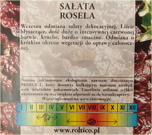 Sałata liściowa Rosela to wczesna odmiana sałaty dekoracyjnej. Liście błyszczące, dość duże o intensywnej czerwonej barwie, kruche, bardzo smaczne. Odmiana o krótkim okresie wegetacji do uprawy całorocznej. Sałata to roślina bardzo łatwa w uprawie. Warto ja uprawiać w przydomowym ogrodzie chociażby ze względu na walory ozdobne i estetyczne. W Polsce najpopularniejszą sałatą jest sałata masłowa, lecz inne odmiany o kolorach i kształcie liście również cieszą się uznaniem.