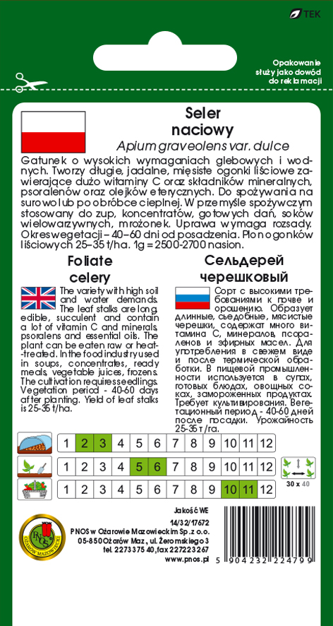 Seler naciowy Verde to odmiana odmiana wytwarzająca wyjątkowo aromatyczne, grube ogonki liściowe i liście w jasnozielonym kolorze. Jego części jadalne są doskonałym dodatkiem do zup, sałatek i surówek, koktajli warzywnych i soków. Zarówno łodygi jak i liście obfitują w cenne składniki odżywcze. Podwyższona odporność na choroby oraz wzniesiony pokrój odmiany Verde Pascal są gwarantem plonów wysokiej jakości.