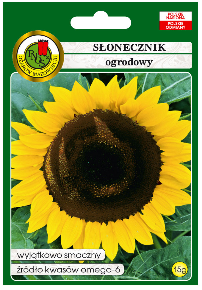 Słonecznik ogrodowy może osiągać do 3 m wysokości. Kwiaty zebrane w koszyczki, kwiatostan o średnicy od 23 do 30 cm. Owocem jest niełupka o owocni skórzastej, nie zrastającej się pojedynczym nasieniem.