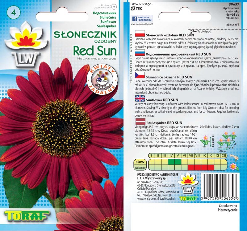 Odmiana wcześnie zakwitająca o kwiatach barwy czerwono-brunatnej, średnicy 12-15cm. Wysiew IV-V wprost do gruntu. Kwitnie od VII-X.