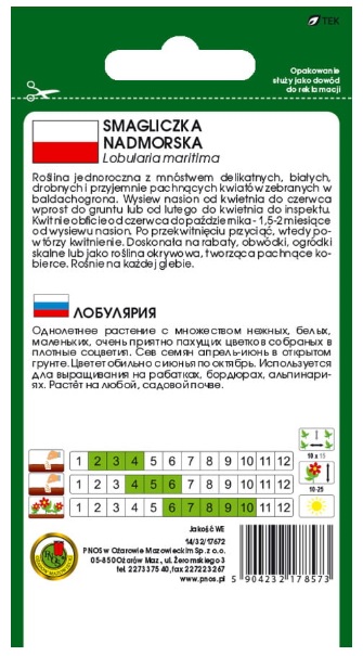 Smagliczka Benthami biała to roślina o białych kwiatach oraz przyjemnym, miodowym zapachu. Zakwita powtórnie po przycięciu. Kwitnie całe lato. Smagliczka nadmorska zwykle ma kwiaty białe, rzadziej różowe i fioletowe. Jest niewymagająca. Zdrowo rośnie.