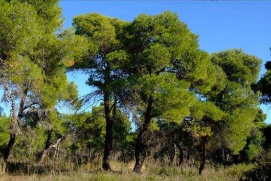 Sosna alepska Pinus halepensis to Europejska sosna, niewielkie drzewo, wysokości 10—20 m, z parasolowatą, szeroką koroną. Występuje w zachodniej części strefy śródziemnomorskiej — od Hiszpanii i północnej Afryki do południowej części Półwyspu Bałkańskiego, a także w Syrii i Palestynie, jako drzewo w uprawie. Rośnie w przymorskim pasie i na wydmach nadbrzeżnych, gdzie tworzy niewielkie drzewostany.