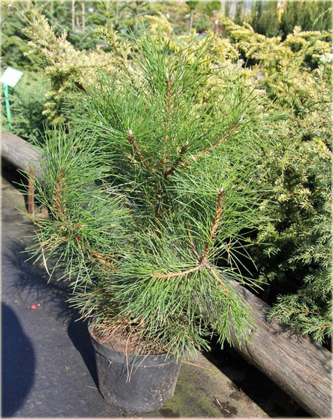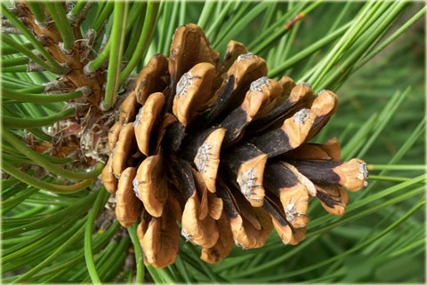 Sosna czarna Pinus nigra to wysokie drzewo osiągające do 40m wysokości. Korona początkowo szerokostożkowata, a z czasem bardziej rozłożysta, spłaszczona i parasolowata, osadzona na prostym i smukłym pniu. Sosna czarna Pinus nigra Ciemnozielone, kłujące igły bardzo dekoracyjne zebrane najczęściej po 2, 3, 5 w jednym pęczku. Igły są także zróżnicowane pod względem długości-mogą mieć od kilku, do nawet kilkudziesięciu centymetrów długości. Pozostają na drzewie do 7 lat. Szyszka jest niewielka, jajowata, osiąga wielkość do 8cm. W stanie niedojrzałym zielona a po dojrzeniu brązowa. Nazwa sosny czarnej wzięła się od barwy kory, która z czasem staje się szaroczarna oraz mocno spękana.