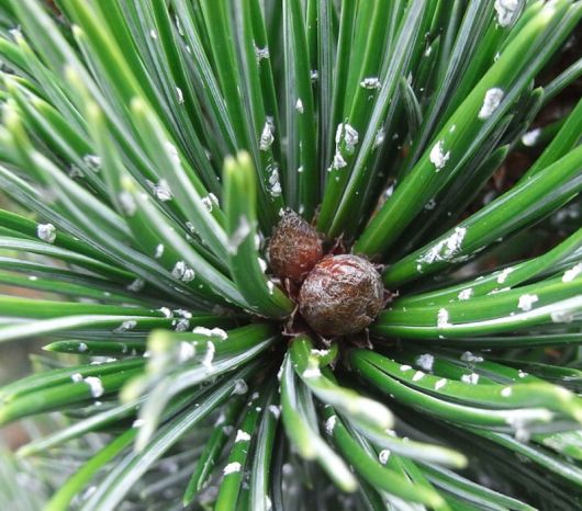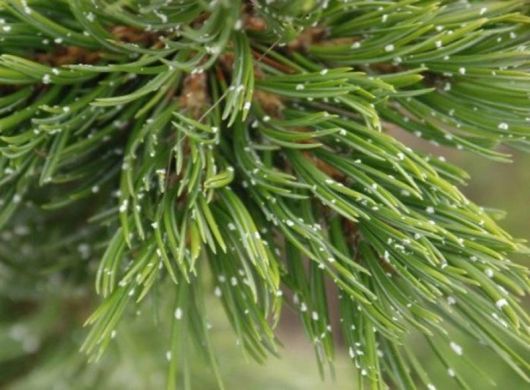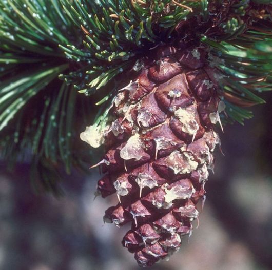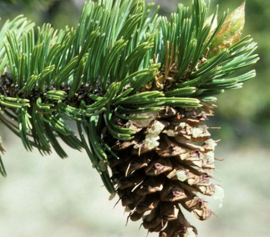 Sosna oścista Pinus aristata należy do najbardziej długowiecznych drzew na świecie. Rośnie bardzo wolno i po 30 latach może osiągać zaledwie 3-4 m. wys. (docelowo może dorastać do ok. 15 m. wys., ale w Polsce rzadko przekracza 8-10 m.). Pień u podstawy potrafi być bardzo gruby. Drzewo ma krzaczasty, nieregularny pokrój i luźną koronę, złożoną z krótkich, zwykle powyginanych i poskręcanych gałęzi. Jego pędy są gęsto pokryte niebieskozielonymi, sztywnymi, krótkimi igłami (ok. 3-4 cm. dł.), z wyraźnie widocznymi na powierzchni białymi kłaczkami żywicy, przypominającymi mszyce wełniste. Igły zebrane są po 5 w niewielkie pęczki i mogą pozostać na drzewie nawet przez kilkanaście lat (są długowieczne). Opadają głównie w dolnej części pędów, przy pniu, dlatego starsze gałęzie wyglądają jak puszyste, kocie ogony. Sosna ościasta rodzi nieduże (ok. 10 cm. dł.), jajowate, początkowo czerwonawe, później jasnobrązowe szyszki, pokryte ościstymi, haczykowatymi łuskami (dojrzewają po ok. 1,5 roku).