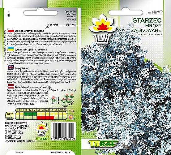 Roślina jednoroczna o dekoracyjnych, jasno-srebrzystych, kutnerowato owłosionych głęboko powcinanych liściach. Stosuje się go na obwódki rabat i kwietniki dywanowe i do dekoracji grobów.