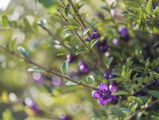 Suchodrzew mirtolistny to ciekawy, zimozielony, ozdobny krzew liściasty, który idealnie wkomponuje się w ogrodową rabatę lub jako roślina okrywowa. Jego liście są drobne, gęste, ciemnozielone, skórzaste podobne do mirtu, charakteryzują się cytrynową lub szarozieloną ozdobną obwódką. Drobne kremowe kwiatki pojawiają się na przełomie V-VI i są słabo widoczne. Purpurowe owoce w kształcicie jagód, dojrzewają w X i jest ich niewiele.