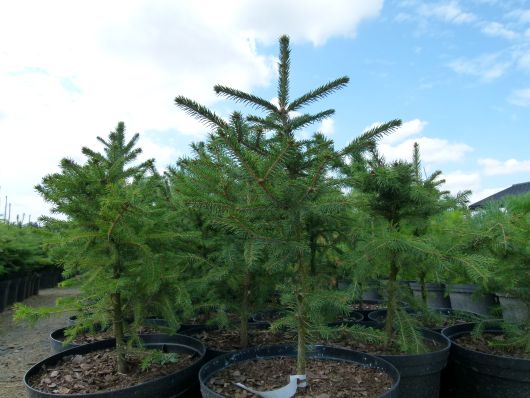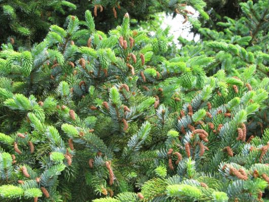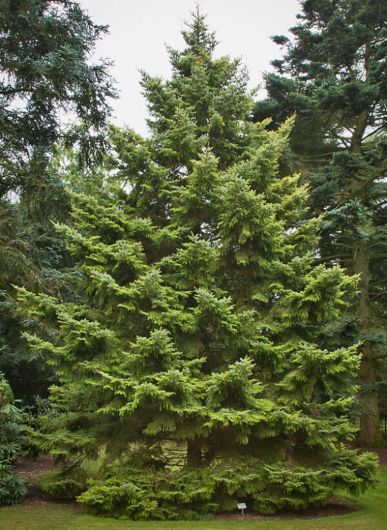 Świerk ajański Picea jezoensis świerk pochodzący z Dalekiego Wschodu. Dorastający w tamtych warunkach do 50 metrów wzrostu, natomiast w naszych warunkach klimatycznych może osiągnąć 15-20 metrów wysokości. Posiada pędy jasne, sztywne a igły spłaszczone o długości do 25 mm. Mają kolor ciemnozielony, od spodu niebieskawo białe. Pokrojem podobny jest to świerka pospolitego.