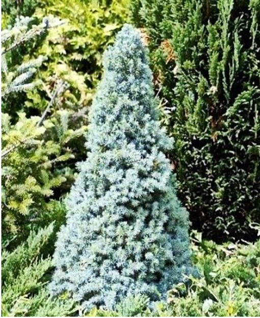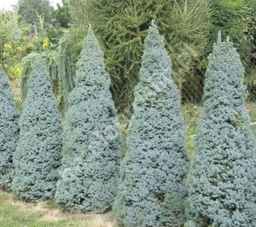 Świerk biały Picea glauca to drzewo w warunkach Polski średniej wielkości – po 30 latach ok 10-15 metrów. Drzewo o koronie typowej dla gatunku , pokrój stożkowy , wąski. Igły zielone długości 1.5 – 2 cm ,z wierzchu niebiesko-zielone, od spodu niebiesko-białe. Po roztarciu silnie aromatyczne . Drzewo pokrojem przypomina świerk kłujący.