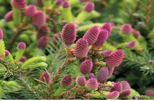 Świerk czerwony Picea rubens W środowisku naturalnym występuje w Ameryce Północnej. W Polsce jest uprawiany rzadko. Drzewo jest długowieczne, może osiągać znaczne rozmiary (nawet 35m i więcej). Posiada dość regularną, stożkowatą koronę z poziomo rozmieszczonymi pędami. Kora jest cienka, łuszczy się. Igły są krótkie, kłujące, błyszczące o jasno- lub ciemnozielonej barwie. Pozostają na drzewie przez wiele lat. Świerk wytwarza cylindryczne, brązowoczerwone szyszki. Posiada płytki, talerzowaty system korzeniowy.