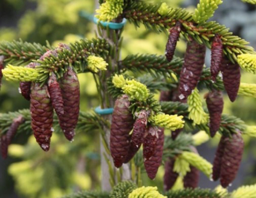 Świerk kaukaski Picea orientalis należy do rodziny sosnowatych (Pinaceae). W środowisku naturalnym występuje w Azji. W Polsce to roślina zadomowiona, czasem spotykana w ogrodach. Osiąga znaczne rozmiary - nawet 35m wysokości. Korona jest dość zwarta, regularna, stożkowata. Posiada najkrótsze igły ze świerków, nie przekraczające 1cm długości. Są kłujące, błyszczące i mają ciemnozieloną barwę. Szyszki są wąskie, wydłużone o brązowej barwie.