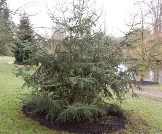 Świerk likangeński rośnie w górach, na stokach i w wąwozach, na wysokości 2500-4100 m n. p. m. Duże drzewo, dorastające do 50 m wysokości, osiągające 2, 5 m średnicy pnia. Kora na pniu szara lub szarobrązowa, na młodych pędach jasnożółta. Tworzy rzadko ugałęzioną koronę o kształcie szerokiego stożka, jeszcze rozluźniającą się z wiekiem. Konary długie, cienkie, lekko wzniesione, natomiast wyrastające z nich rozgałęzienia mają tendencję do przewieszania się. Igły wyrastające z pędów gęsto, krótkie i cienkie (6-15 mm x 1-1, 5 mm), proste lub lekko zakrzywione, ciemnozielone lub niebieskawozielone. Drzewo licznie wytwarza nieduże, ale bardzo dekoracyjne szyszki o owalnym kształcie i długości 4-12 cm, zabarwione na czerwono lub ciemnofioletowo.