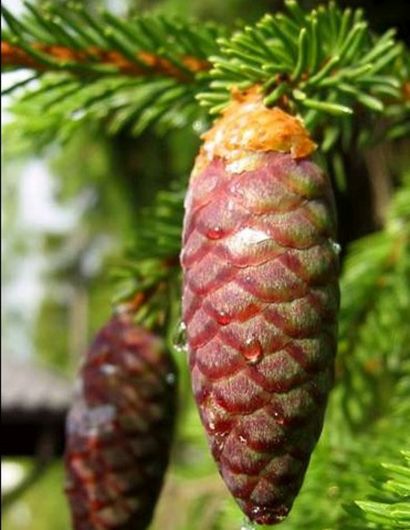 Świerk pospolity to gatunek drzewa z rodziny sosnowatych, który pochodzi z Europy Północnej oraz terenów górskich Europy Środkowej. W Polsce rośnie przede wszystkim na północnym wschodzie, na południu i w górach. Tylko w centralnej i zachodniej Polsce nie występuje naturalnie. Przez długi czas świerk pospolity był sadzony w lasach jednogatunkowych, w których poszyciu nie była w stanie urosnąć prawie żadna inna roślina. Niestety minusem takich upraw jest to, że rozprzestrzeniają się tam wszelkie szkodniki, takie jak chociażby korniki. Obecnie świerk sadzi się coraz częściej w uprawach mieszanych wraz z innymi drzewami, choć wciąż jest jeszcze dużo lasów jednogatunkowych. Świerk pospolity może dorastać do 50 m wysokości. Ma prosty kolumnowy pień o średnicy około półtora metra. Kora świerku ma czerwono-brązowy lub szaro-brązowy odcień. Na początku jest gładka, a z wiekiem staje się coraz bardziej łuskowata. Konary świerku są poziome lub wygięte do góry, a korona równomiernie stożkowata i smukła. Igły ustawione są na gałązce spiralnie, są też ostro zakończone i kłujące, a ich długość wynosi do trzech centymetrów. Igły są czterokanciaste i osadzone na krótkich trzonkach. Utrzymują się przez około sześć lat. Igły świerku wolno się rozkładają. Świerk ma zwisające szyszki, które osiągają długość do 16 cm i opadają w całości. Młode kwiaty męskie mają kolor czerwony, a kwiatostany żeńskie są wyprostowane. Warto wiedzieć, że świerk pospolity ma płaski system korzeniowy. Jego korzenie nie rosną w głąb, ale płytko pod powierzchnią ziemi. Dzięki temu drzewo może rosnąć również w cienkiej warstwie ziemi. Minusem niestety jest fakt, że w czasie burzy i silnego wiatru świerk szybko przewraca się razem z całym systemem korzeniowym. Warto też wspomnieć, że świerk kwitnie wiosną.