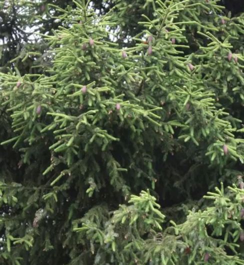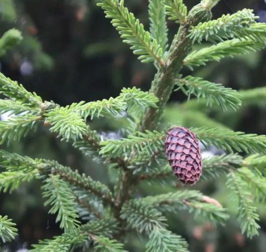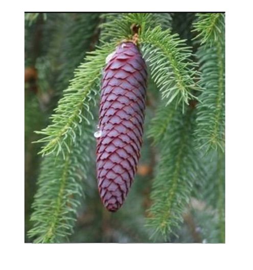 Świerk purpurowy jest dużym drzewem, dorastającym do 50 m wysokości, o pniu prostym, dochodzącym w pierśnicy do 1 m średnicy, pokrytym ciemnoszarą korą. Korona stożkowa, regularna. Igły zielone, krótkie, wąskie, na górnej stronie pędów nastroszone lub przylegające, na dolnej zawsze nastroszone. Szyszki nieduże, jajowate, ok. 3 x 2, 5 cm, fioletowe lub ciemnopurpurowe. Wysokiej jakości drewno jest chętnie wykorzystywane w budownictwie, meblarstwie, a nawet do produkcji instrumentów muzycznych, bywa także stosowane do produkcji papieru. To prowadzi do zmniejszania liczebności gatunku, ale wprowadzony w Chinach zakaz wyrębu na wrażliwych obszarach powinien ten spadek zahamować. W okresie spoczynku świerk purpurowy jest odporny na mrozy (USDA 4), jednak młode przyrosty mogą być uszkadzane przez późne przymrozki, dlatego najlepszym dla niego stanowiskiem jest miejsce osłonięte lub północna wystawa, które pozwolą nieco opóźnić jego wiosenny start. Wymaga stanowiska słonecznego, źle znosi zacienienie. Nie ma dużych wymagań glebowych, dobrze rośnie na ubogim, nawet bardzo kwaśnym, ale niezbyt suchym podłożu. Dość wrażliwy na wiatr, zwłaszcza jeśli rośnie na płytkich glebach. Wrażliwy na stojącą wodę, suszę i zanieczyszczenia powietrza.