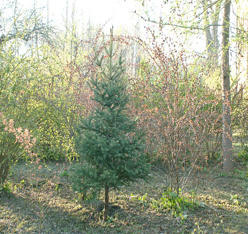 Świerk Schrenka Picea schrenkiana var Tianshanica to drzewo w warunkach Polski dorasta do 15-20 m. Gatunek charakteryzuje się dość powolnym wzrostem, nastroszonymi młodymi igłami oraz tym, że tworzy gęste korony o symetrycznym pokroju. Igły ciemnozielone , szyszki młode są fioletowe, dojrzałe zmieniają kolor na brązowy.