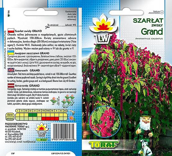 Okazała roślina jednoroczna o rozgałęzionych, gęsto ulistnionych pędach. Wysokość 150-200cm. Kwiaty amarantowe zebrane w dekoracyjne, bardzo długie (30-50cm) zwisające kwiatostany ("lisie ogony"). Kwitnie VII-X.