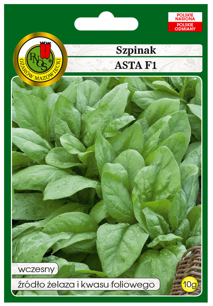 Szpinak Asta to odmiana wczesna Odmiana heterozyjna, wczesna, szybko rosnąca, odporna na dwie rasy mączniaka rzekomego. Jest średnio wrażliwa na wybijanie w pędy kwiatostanowe. Charakteryzuje się lekko wzniesionym pokrojem. Tworzy duże rozety zielonych, prawie gładkich liści. Odmiana bardzo plenna. Nadaje się do zbioru mechanicznego. Zalecana głównie do uprawy z siewu letniego i jesiennego (wprost do gruntu lub z rozsady). Nadaje się do zbioru mechanicznego z siewu letniego i jesiennego. Dobrze zimuje w gruncie.