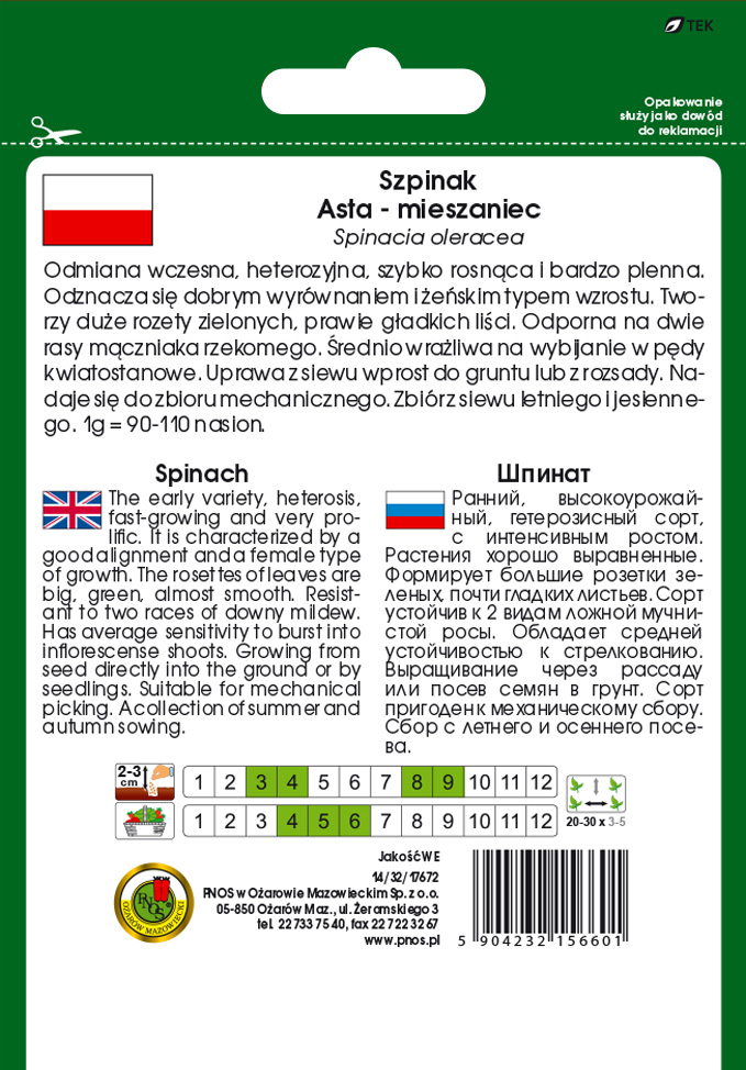 Termin wysiewu: III-IV VIII-X