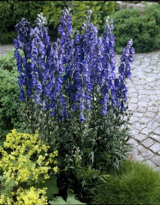 Tojad mocny określany jest też jako mordownik, pantofelki, trzewiczki Matki Boskiej, omiag, omiak lub koniki. Osiąga wysokość do 150 cm. Kwiatostan znajdujący się na górnej części łodygi składa się z grona lub kilku gron o fioletowo-granatowej barwie. Kwiaty grzbieciste, o opadającym okwiecie, do 5 cm długości i do 2 cm szerokości. Górna część okwiatu hełmowata, zawiera wewnątrz dwa miodniki na długich trzonkach. Tojad to wieloletnia bylina, która mimo swojego piękna jest silnie trująca. Roślina jest średniowysoka, dorasta do około metra wysokości. Jej pędy są sztywne, wyprostowane i lekko zdrewniałe. Odmiana ta ma wzniesiony i wąski pokrój. Tojad jest ulistniony przez duże, dłoniaste i postrzępione liście, których blaszka jest intensywnie zielona i błyszcząca. Bylina zakwita dosyć późno, bo dopiero w sierpniu, jednak ubarwia ogrody aż do pierwszych przymrozków. Jej kwiaty są niewielkich rozmiarów ale zbierają się w okazałe i groniaste kwiatostany, które wieńczą łodygi rośliny, wyglądając przy tym wyjątkowo ozdobnie. Tojad nie jest rośliną trudną w uprawie, jednak należy pamiętać, aby wszelkie prace pielęgnacyjne wykonywać w rękawicach ochronnych. Roślina jest bowiem trująca i kontakt z nią może wywołać wiele skutków nieporządanych. Bylina preferuje półcień, jednak może rosnąć też w słońcu, o ile stanowisko jest dla niej dostatecznie wilgotne. Jest piękną ozdobą, która uroczo prezentuje się np. wokół zbiorników wodnych.