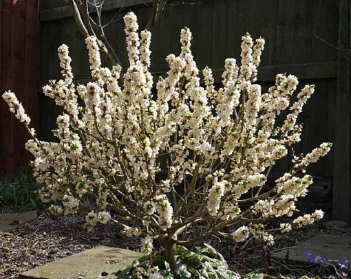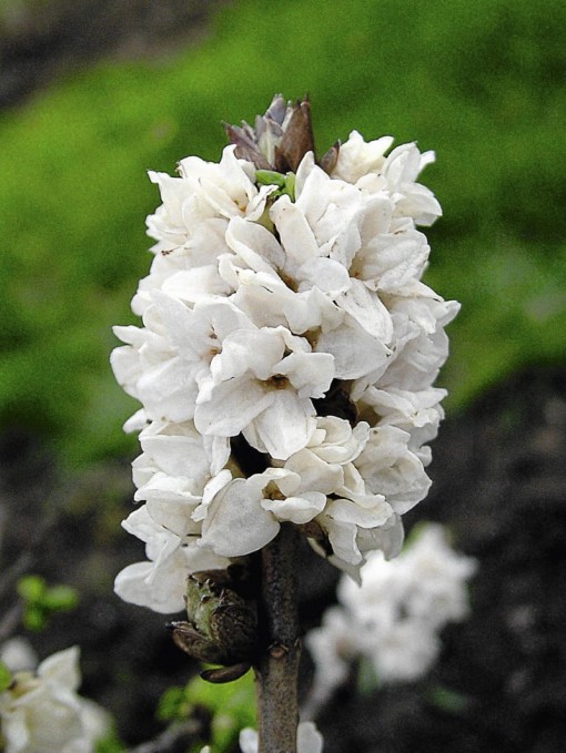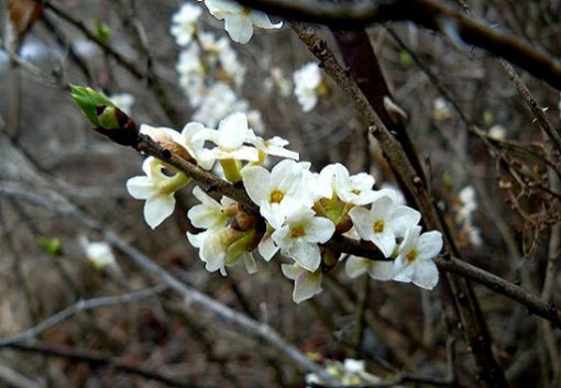 Wawrzynek wilczełyko biały to niewielki krzew, dorastający zwykle do wysokości 1-1,3 m i osiągający podobną średnicę ma ogromną zaletę – kwitnie bardzo wcześnie, gdy na jego pędach nie ma jeszcze liści. Najczęściej następuje to w marcu lub kwietniu, ale gdy zima jest łagodna, kwiaty mogą się rozwinąć nawet w styczniu lub lutym. W niektórych sezonach obserwowano je już w grudniu, gdy był on ciepły, a wcześniej - w listopadzie przeszła fala mrozów.