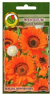 Wenidium pomarańczowe to roślina o srebrzystych liściach i okazałych, pomarańczowych kwiatach z ciemnym pierścieniem o średnicy 10cm. Wenidium wspaniałe to roślina ozdobna rodziny astrowatych (Asteraceae). Pochodzi z Południowej Afryki. W Polsce jest mało znana. Potoczna nazwa rośliny to afrykańskie stokrotki.