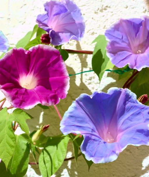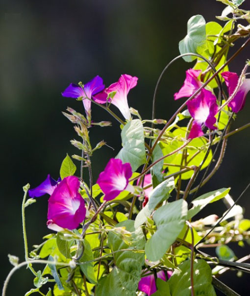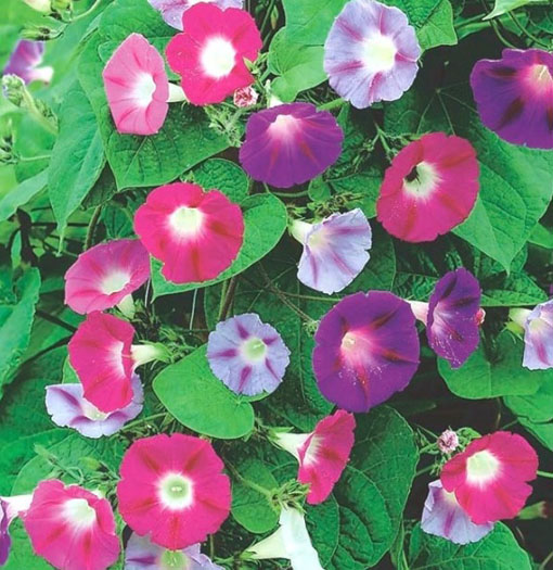 Wilec Early Call Ipomoea nil jest delikatną, prześliczną rośliną jednoroczną o wiotkich, wijących się pędach, porośniętych obficie sercowatymi liśćmi i upstrzonych trąbkowatymi kwiatami. Ta wyjątkowa, kompaktowa odmiana jest wręcz stworzona do uprawy w pojemniku, w którym w krótkim czasie utworzy piękny gąszcz ożywczej zieleni i pastelowych, białych, błękitnych i liliowo-fioletowych kwiatów.