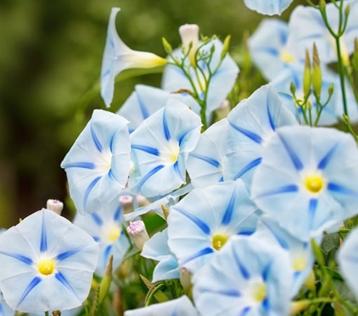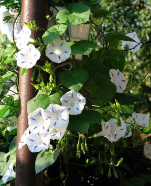 Wilec trójbarwny Blue Star Ipomea tricolor charakteryzująca się dużymi (nawet 10 cm średnicy) kwiatami w kolorze białym, z niebieską gwiazdą, przebiegającą przez środki jego płatków. Wzrost tego pnącza jest szybki i dość silny, docelowo osiągając nawet 3 metry długości. Ta odmiana pnącza lubi nasłonecznione miejsca i intensywnie porasta płoty i inne miejsca, po których może się piąć. Kwitnie od lipca aż do przymrozków. Nadaje się do obsadzania altan, pergoli, siatek, balkonów. Jest łatwa w uprawie. Nasiona można wysiewać wiosną wprost do gruntu, gdy nie będzie już zagrożenia przymrozków. Można również wyhodować sadzonki w doniczkach w domu.