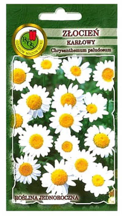 Złocień karłowy biały to roślina silnie rozkrzewiona o wzniesionych łodygach i ząbkowanych liściach. Białożółte kwiaty osadzone na końcach pędów. Kwitnie długo i obficie. Lubi gleby gliniastopiaszczyste, dostatecznie wilgotne.