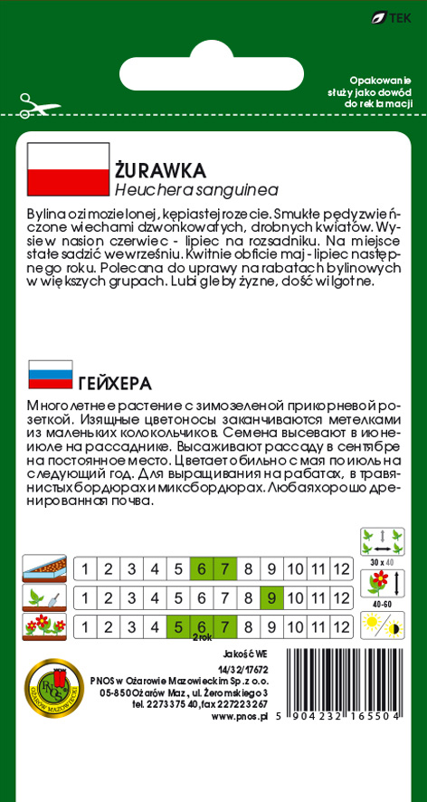 Wysiew: V-VII na rozsadniku lub wprost do gruntu