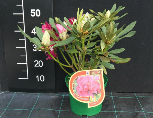 Rododendron czeski Vranov kwiatostany o barwie biskupiej czerwieni z białymi pręcikami Jest to odmiana rododendrona z kolekcji czeskiej. Rododendrony czeskie są to odmiany wyhodowane w Instytucie Badań Nad Krajobrazem i Ogrodem Ozdobnym im. Silva Tarouca, Pruhonice, Republika Czeska. Odmiany z Kolekcji Czeskiej zostały wyhodowane w Instytucie Badań nad Krajobrazem i Ogrodem Ozdobnym im. Silva Tarouca, Pruhonice, Republika Czeska. |