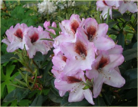 Odmiana niezwykle atrakcyjna z uwagi na jasnoróżowe, prawie białe kwiaty, z dużą bordową plamką. Krawędzie płatków różowe, lekko pofalowane.
