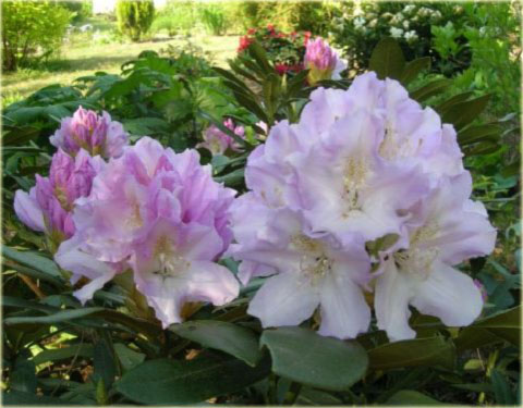 Kwiaty tego różanecznika są bardzo duże, osiągające od 6,5cm do 8cm średnicy, zebrane po 17-19 sztuk w okazałe, wierzchołkowe kwiatostany. Liście ciemnozielone i błyszczące, wąskoeliptyczne, od 10cm do 13cm długie i od 3,5cm do 4cm szerokie. Kwitnie bardzo obficie pod koniec maja.