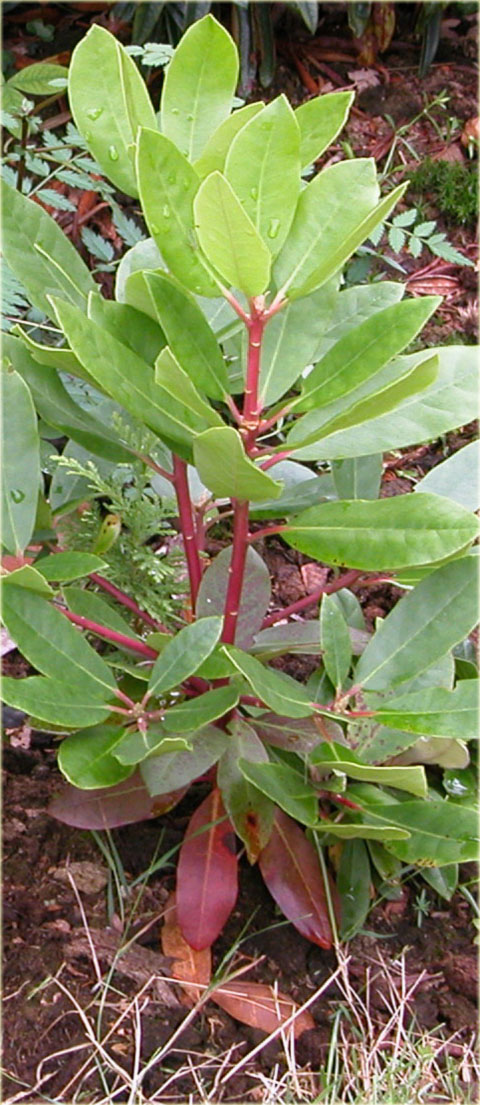 Liście eliptyczne i jasnozielone, osiągające wielkość 15 x 5cm. Kwiaty niezwykle ozdobne, lejkowate, czerwone z jaśniejszym dnem i delikatnym, ciemniejszym rysunkiem. Średnica pojedynczego kwiatu ok. 8cm. Kwiaty zebrane są po kilka sztuk w dużych, wierzchołkowych kwiatostanach. Wymaga stanowisk półcienistych i osłoniętych oraz gleb kwaśnych, próchnicznych i umiarkowanie wilgotnych. Mrozoodporność zaledwie do -20 st.C, dlatego preferuje miejsca zaciszne. Potrzebuje także dobrego, zimowego okrycia.