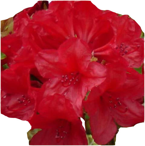 Liście jasnozielone, duże i matowe. Kwiaty dzwonkowate, szeroko otwarte, intensywnie jasnoczerwone, z wyraźnymi białymi pręcikami, dość duże, zebrane po kilkanaście sztuk w okazałe, wierzchołkowe kwiatostany. Kwitnie dość intensywnie w trzeciej dekadzie maja i na początku czerwca.